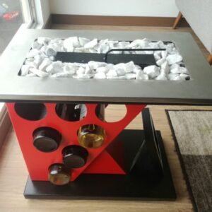 Chimenea bioetanol tipo bar incluye con la compra accesorios para encendido de la chimenea: un litro de Bioetanol, piedra decorativa, apaga llama, encendedor largo, vaso dosificador y fibra ahorradora Bioetanol.