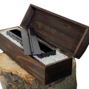 Chimenea bioetanol tipo cofre madera incluye con la compra accesorios para encendido de la chimenea: un litro de Bioetanol, piedra decorativa, apaga llama, encendedor largo, vaso dosificador y fibra ahorradora Bioetanol.